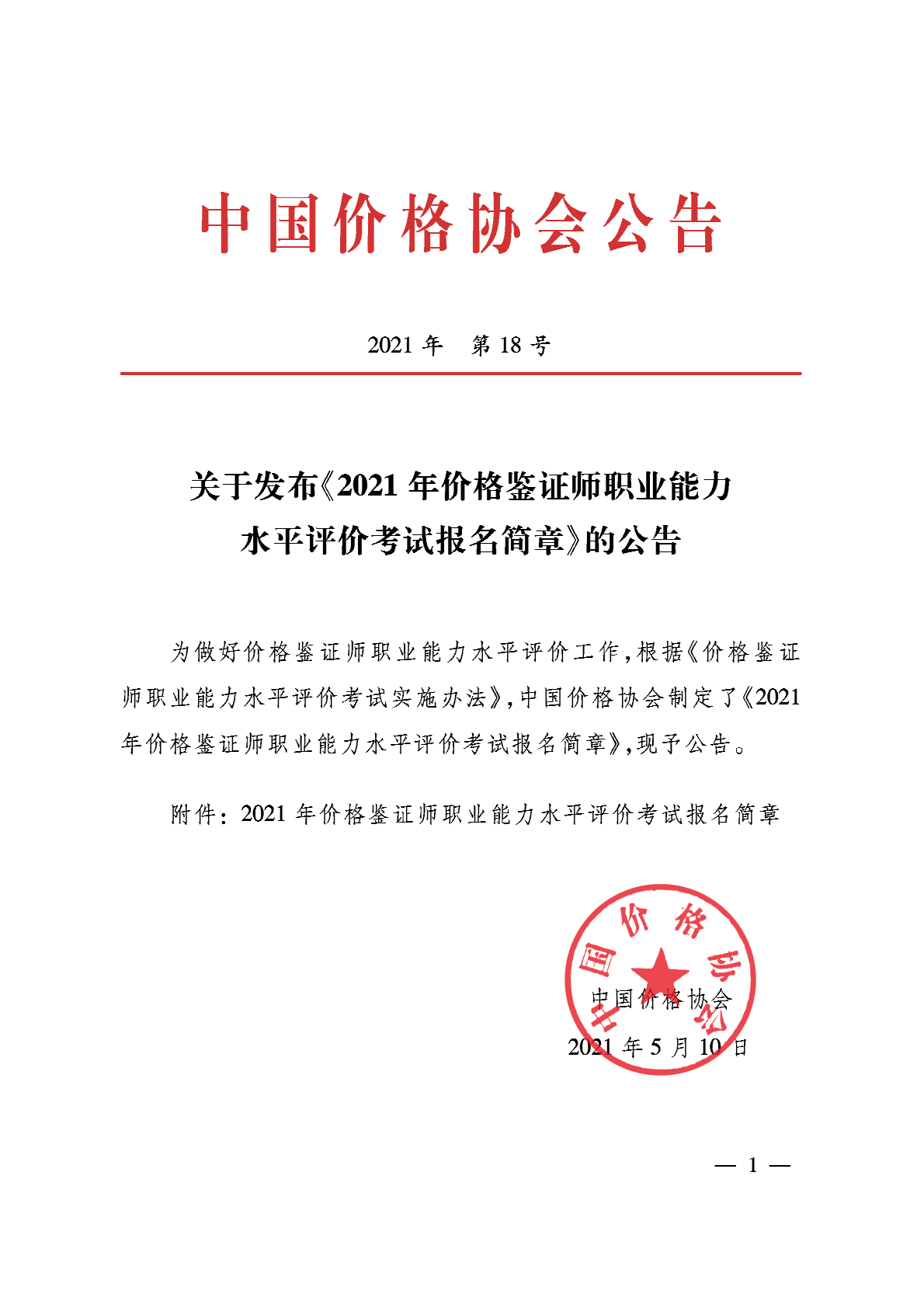 關于發布《2021年價格鑒證師職業能力水平評價考試報名簡章》的公告
